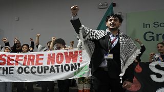 01:30 Gaza Gazans express hope for peace as New Year dawns Surrounded by the ruins of war, they prayed for an end to the violence that has upended their lives.
